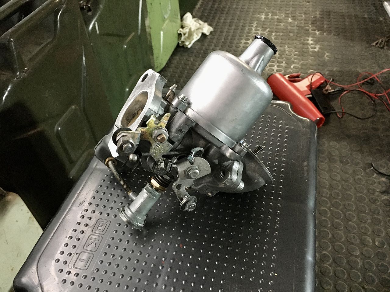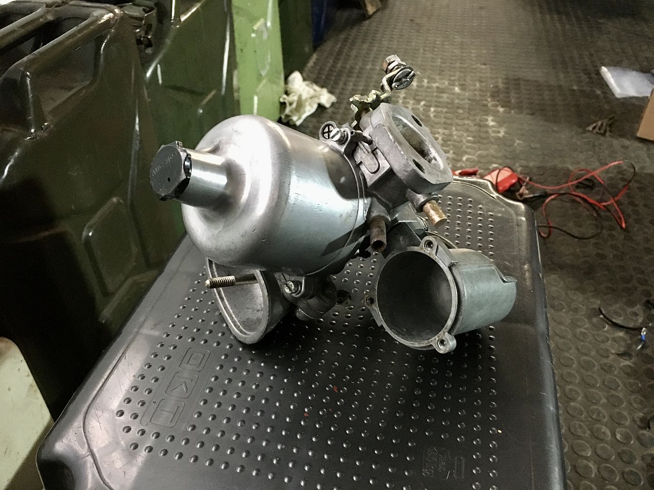 - Neue Teile: Führungshülse mit relativ großem Düsenloch; Ventil mit grober Spitze und starr (ohne Feder am Auflagepunkt); Schwimmer an Blechlasche verstellbar bzw. "verbiegbar"
