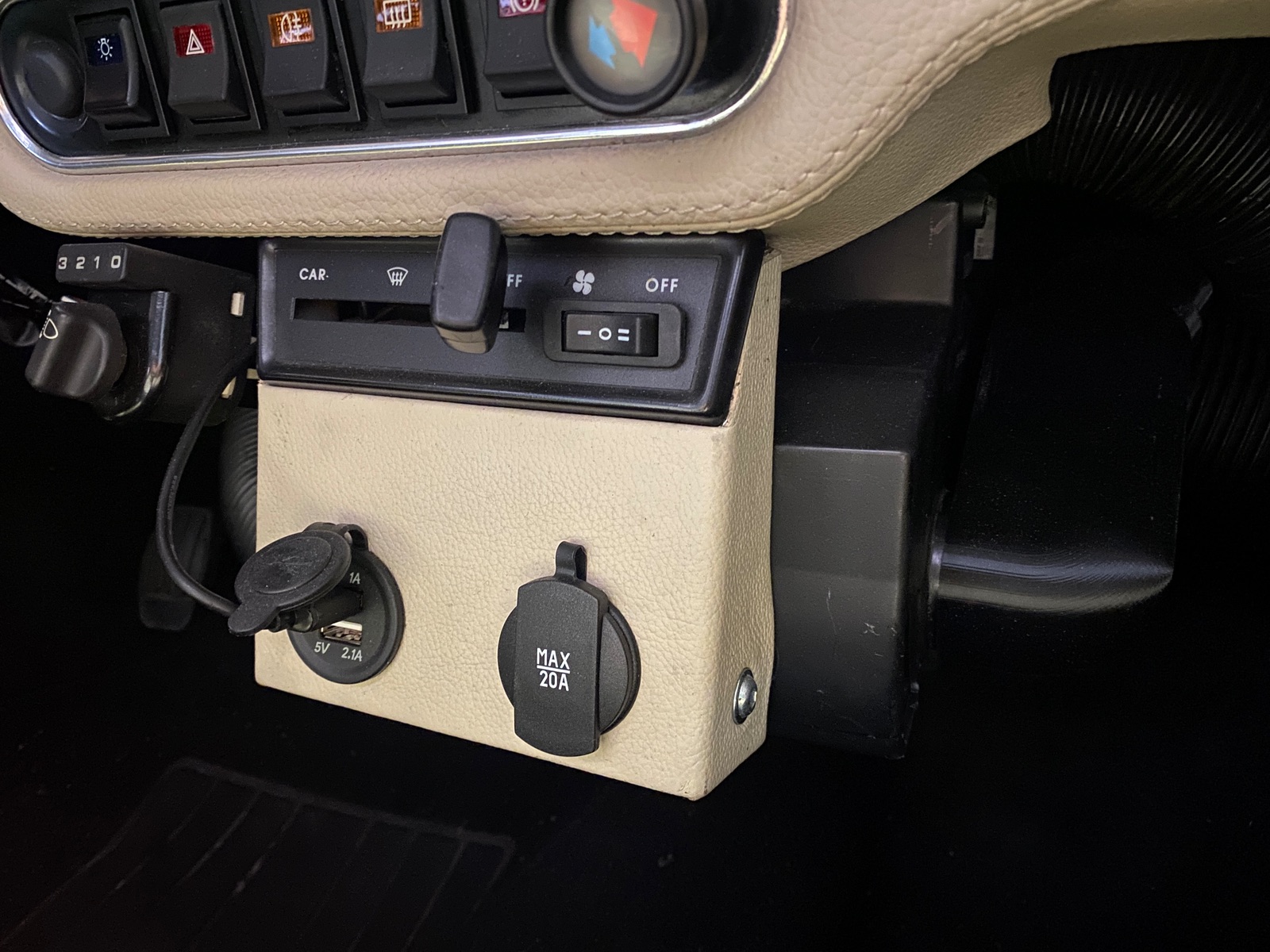 Ich habe mir von den retro-components.co.uk den Aschenbecher-Einsatz gekauft. Das finde ich passt einfach am besten. Handyhaler und usb-Anschuß in einem. Das ganze auf Dauerplus. Weil es so wenig Strom zieht (wenn nichts dran steckt), das es nur über den Winter relevant wird und da ist die Batterie eh raus.