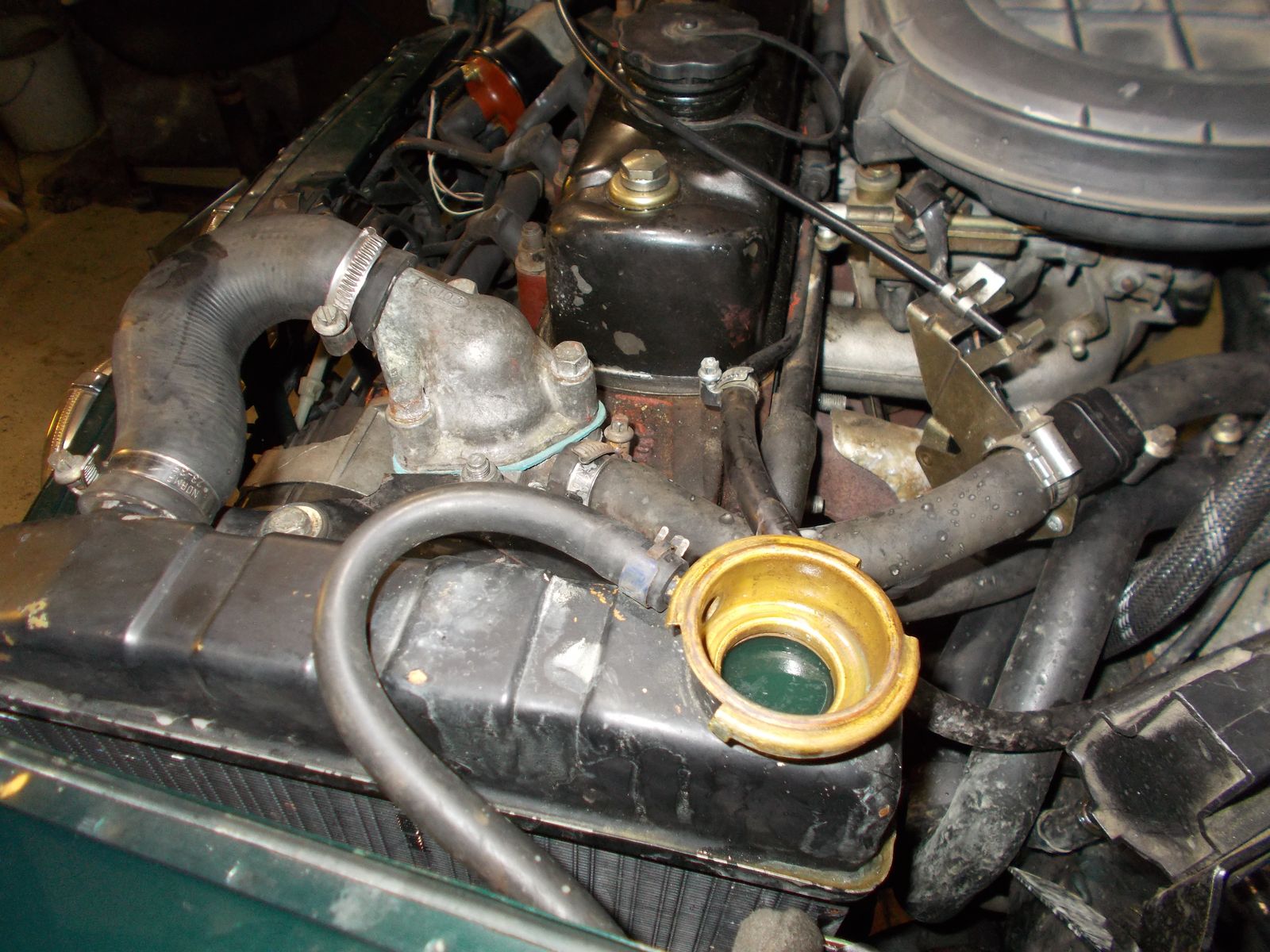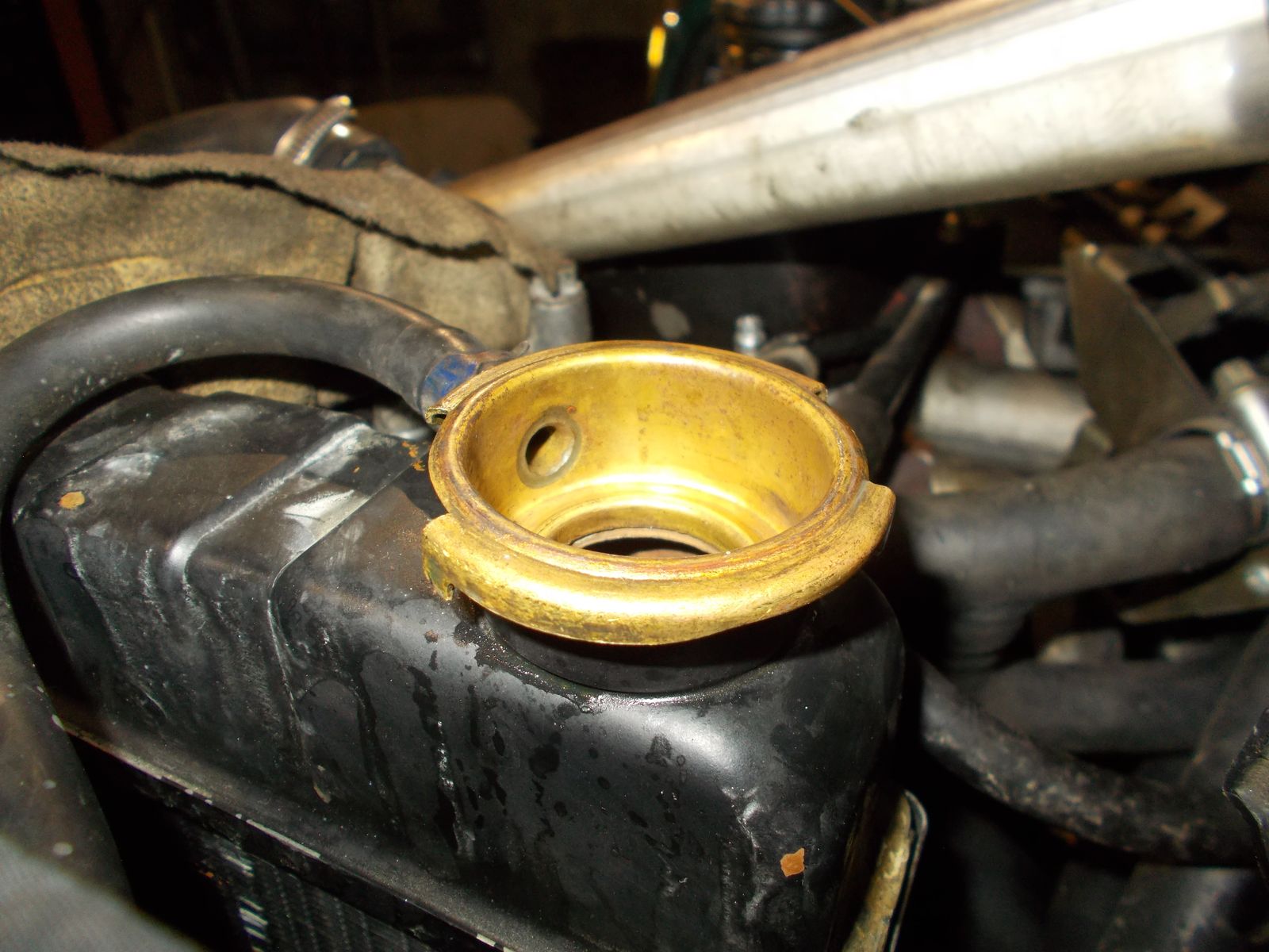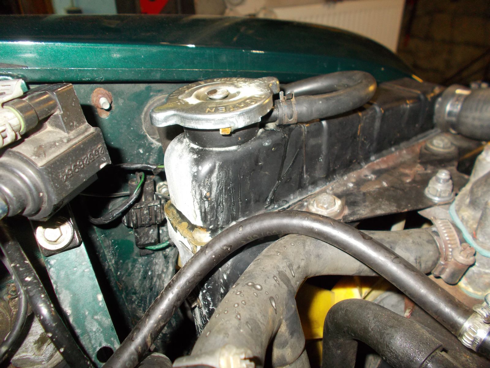 Nun drückt es wieder beim Kühlerdeckel raus. Nach dem Abkühlen habe ich aufgemacht und es hat noch immer nachgesprudelt.