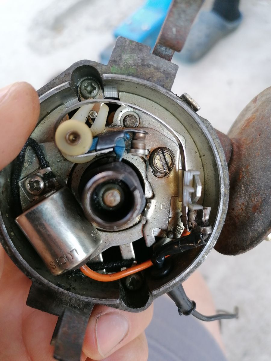 Dan geschaut ob Funke kommt,leider nicht... Also Verteilerkappe ab und den Motor händisch durchgedreht und siehe da, der unterbrecherkontakt macht nicht mehr auf.