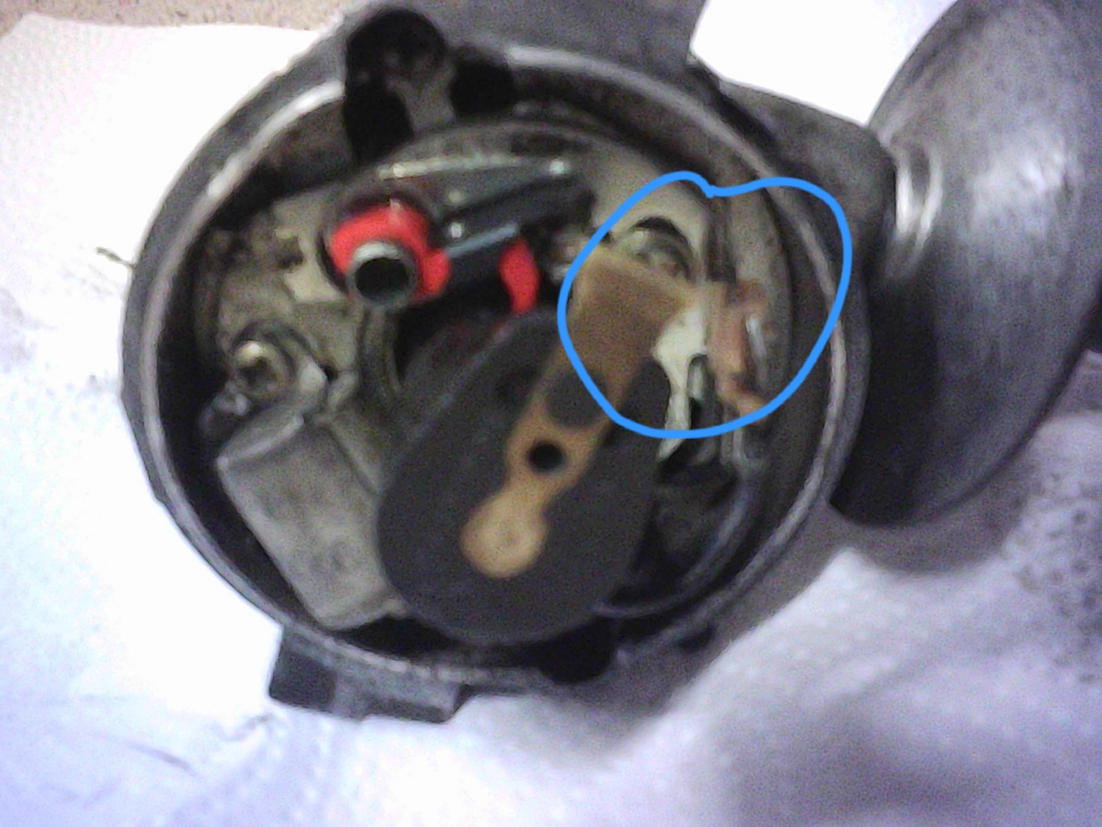 Langsam...ist denn die Kontaktplatte, die sich über die Bewegung aus der Unterdruckdose verdreht, frei beweglich? Manchmal wird der Kontakt oder der Kondensator mit zu langen oder fehlenden Unterlegscheiben montiert und dann verklemmt die Kontaktplatte mit der Trägerplatte darunter.