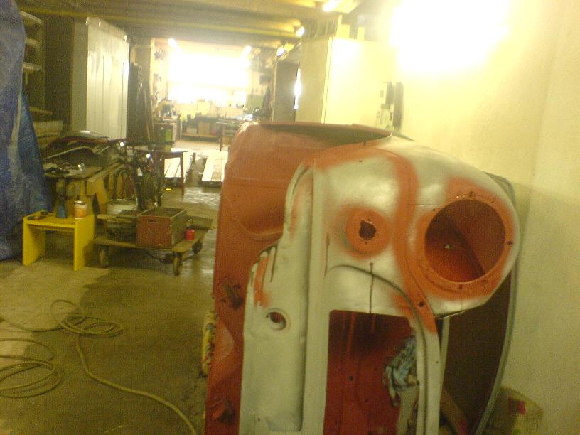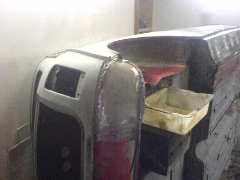 der unterboden ist grundiert und der windlauf habe ichs chonmal angefangen zu schweißen.