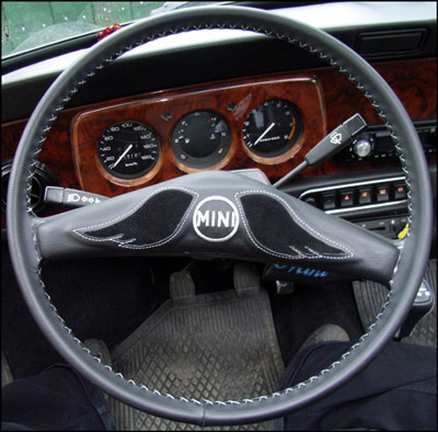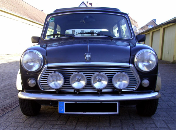 Beschreibung: Innenausstattung: Sitze aus Kunstleder schwarz / Stoff schwarz, Lederlenkrad mit Stick „Mini“, Schaltknauf Leder, Armaturenbrett Wurzelholz, silberne Türgriffe und Fensterheber, besonderes Extra: Mittelkonsole (kann problemlos ausgebaut werden). Innenausstattung wurde Ende 2009 neu angefertigt!!