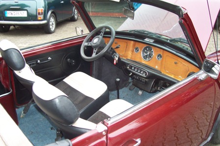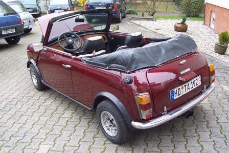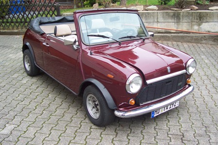 Habe momentan ein Angebot für einen Mini Cabrio Umbau BJ. 1977. Laufleistung kann bei dem alter ja nicht wirklich bekannt sein... Optisch ist er in einem einwandfreien zustand, die letzte Lackierung war 1995 (Seid dem im Besizt der Verkäuferin). Er wurde nur im Sommer gefahren und hatte einen warmen Garagenplatz. Es gibt nur eine kleine Roststelle am rechten Dreiecksblech. In das Dach werden vor Verkauf noch neue "Scheiben" eingesetzt. Die Sitze sind neu mit schwarzen Leder bezogen. TüV und AU neu. Farbe ist Bordeaux-Rot würde ich sagen...Ein kleines Traumauto...