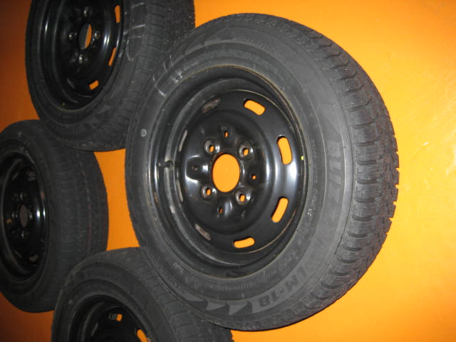 Winterreifen Bridgestone Blizzak 145/70 R12 auf schwarzen Stahlfelgen 12"