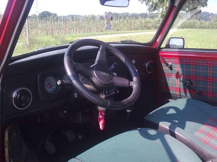 Der Mini ist in sehr gutem Zustand. Die Front wurde erst im Sommer 2006 entrostet, neue Bleche eingeschweist (Frontscheibenrahmen; unterhalb der lampen; Fahrertür) und lackiert. Innenausstattung ist noch komplett original bis auf einen Gurt. Und in sehr gutem Zusand. Ich habe einen Verkleidung des Armaturenbrettes angebracht und einen neuen Tacho eingebaut. Eine neue Einspritzanlage ist auch drauf. Er hat einen K&N Sportluftfilter drin und einen Sportauspuff dran. Zudem habe ich noch zwei Zusatzscheinwerfer vorne dran gemacht. Der Mini ist eine Sonderedition (Balmoral) mit Faltdach, das zwar etwas ausgerissen aber dicht ist. Die Alarmanlage hab ich abgehängt (bzw. die Türkontakte entfernt). ist aber kein Problem das wieder herzustellen wenn man möchte. Es sind 2-Satz Sommerreifen dabei. Die Winterreifen sind leider abgefahren. Felgen sind die Original Minilite drauf. Ach ja, und vor ca. 2 jahren hat er eine neue Lichtmaschine bekommen.