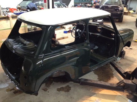 Farbe: British Racing green mit weißem Dach