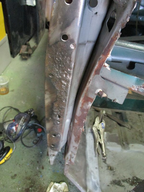 Bevor ich den linken Schweller anging, habe ich die Front entfernt und die A-Säulen sowie den Frontscheibenrahmen instandgesetzt.