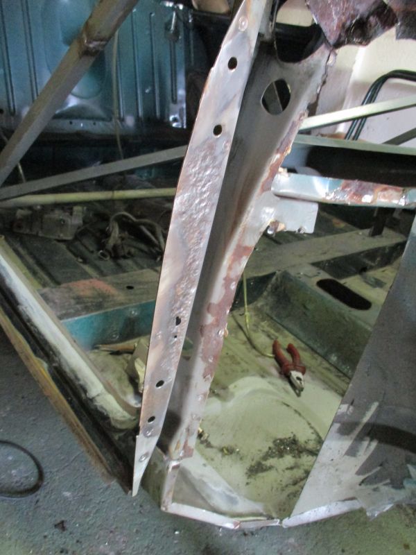 Soweit ist die A-Säule noch in einem guten Zustand. Innen ist kein Rost! Ich werde "nur" die verosteten Stellen auswechseln und den Rest strahlen und versiegeln: