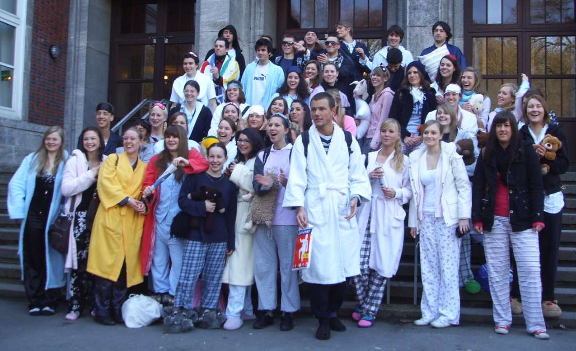 Das gibt's aber nur in der gymnasialen Oberstufe in der letzten Woche... nennt sich Mottowoche... Die Elite darf das... ![]()