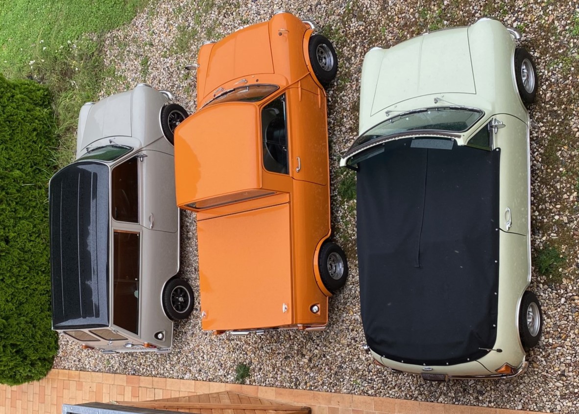 Zum Verkauf stehen mein Schweiboe-Cabrio und der Morris Pickup, beide im guten Zustand mit H-Kennzeichen und eingetragenem 1300er Motor – und anderen Feinheiten.