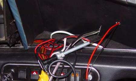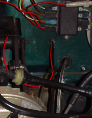 Ich hab Dir hier mal ein Foto aus dem Innenraum und eins vom Motorraum, da siehst Du das Loch. Das größere ist das mit dem Gummigedöns drin, aus dem bei mir die Stahlflexleitung der Öldruckanzeige kommt - das kleiner oberhalb ist das, aus dem auch das rote Kabel kommt. Original ist das schlicht unbelegt, links unterhalb des kleinen Sicherungskastens (wenn Deiner den hat).