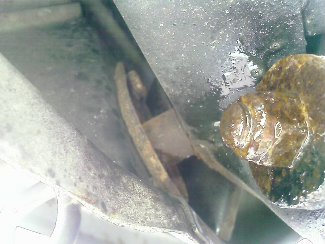 Also nochmal unter den Wagen und erneut auf Ursachen suche gegangen. Habe dann am rechten Abschlepphaken eine Entdeckung gemacht. (siehe Bild)
