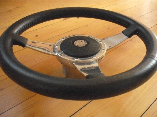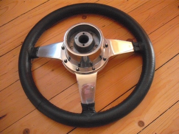 verkaufe hier ein Leccara Lenkrad Made by Moto-Lita. Es hat einen Durchmesser von 33 cm und ist in einem sehr guten Zustand. Die Nabe ist poliert. Es ist leicht geschüsselt( siehe Bild)