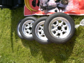 Biete die Räder und den gesamten Rest, d.h. Lenkrad, Nabe, Bremskaftverstärker (mit Pedalen etc., Modify your Mini (von 1977), Zusatzscheinwerfer, neue Bremsschläuche, Auspuff, ) Verbreiterungen, diverse neue Gummis und noch diverse Kleinteile für 400€ + Versand an.