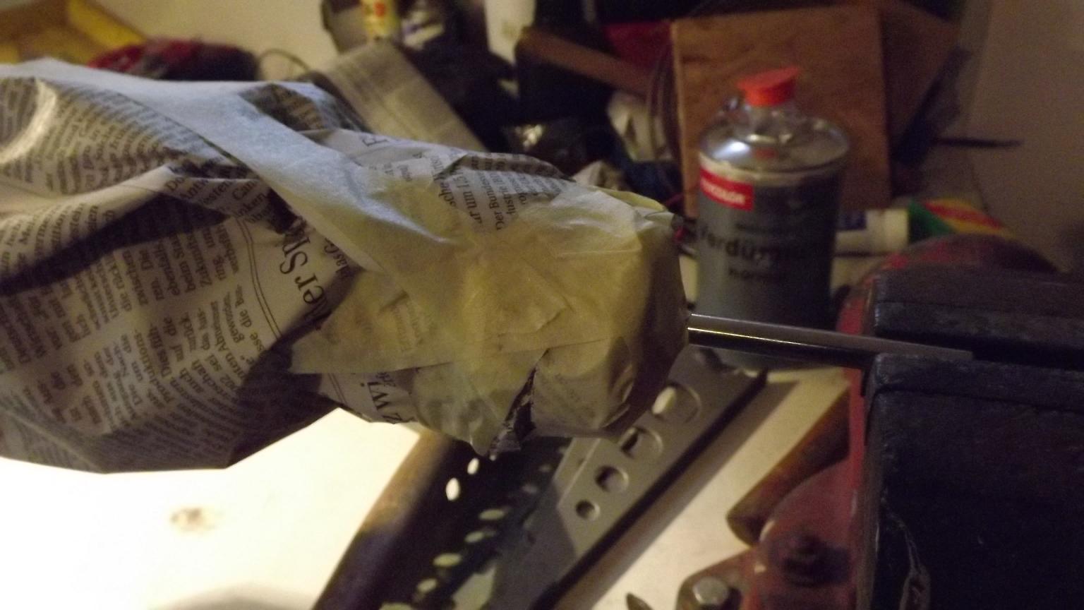 ACHTUNG: Beim Flexen entsteht Abrieb, der hat in dem Motorlager nichts verloren! Und die Späne sind magnetisch, daher den Elektromotor gut einpacken, bevor die Operation beginnt, damit der Motor sauber bleibt! Und Werkbank sauber halten, auch Rost ist magnetisch!