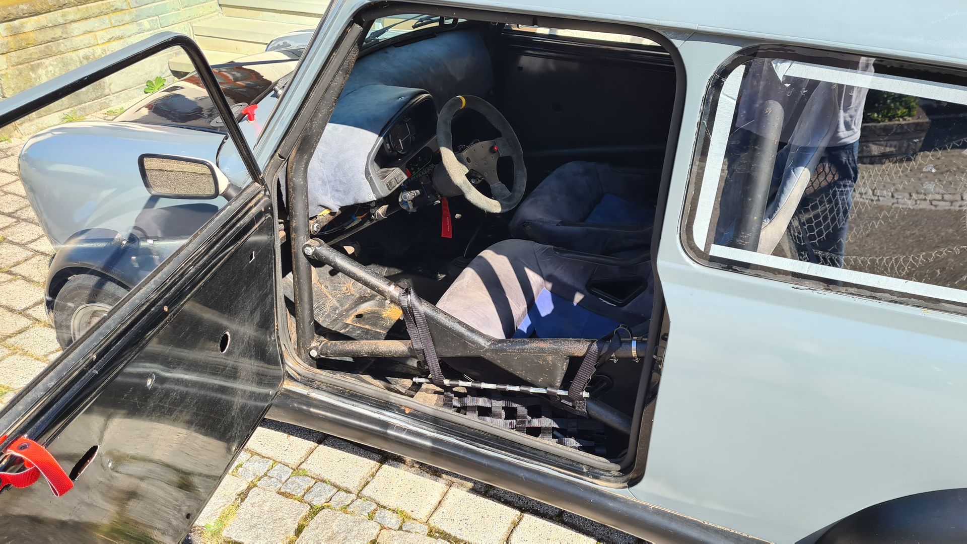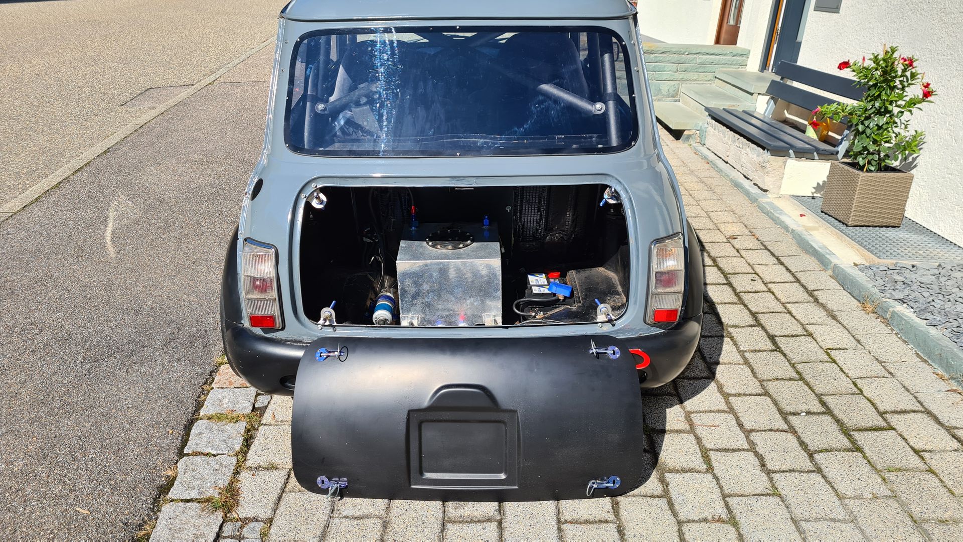 Der Mini besitzt diverse GFK Karosserieteile Kotflügel, Haube, Kofferraumdeckel, Bodykit Zeemax. Bis auf Frontscheibe alles Scheiben Makrolon. klarglas Golf 1 Scheinwerfer,