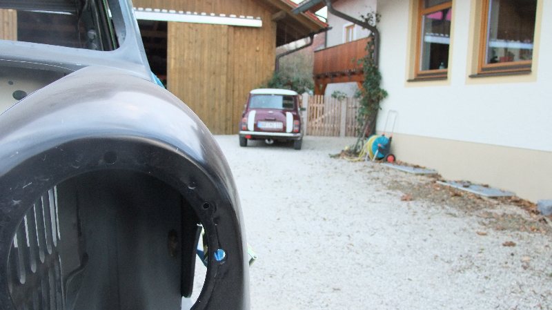 Die Türen sind nur drin weil der Mini ja aud der Seite liegt ...wenn er wieder normal steht kommen die Türen wieder raus und es wird "nachbehandelt"