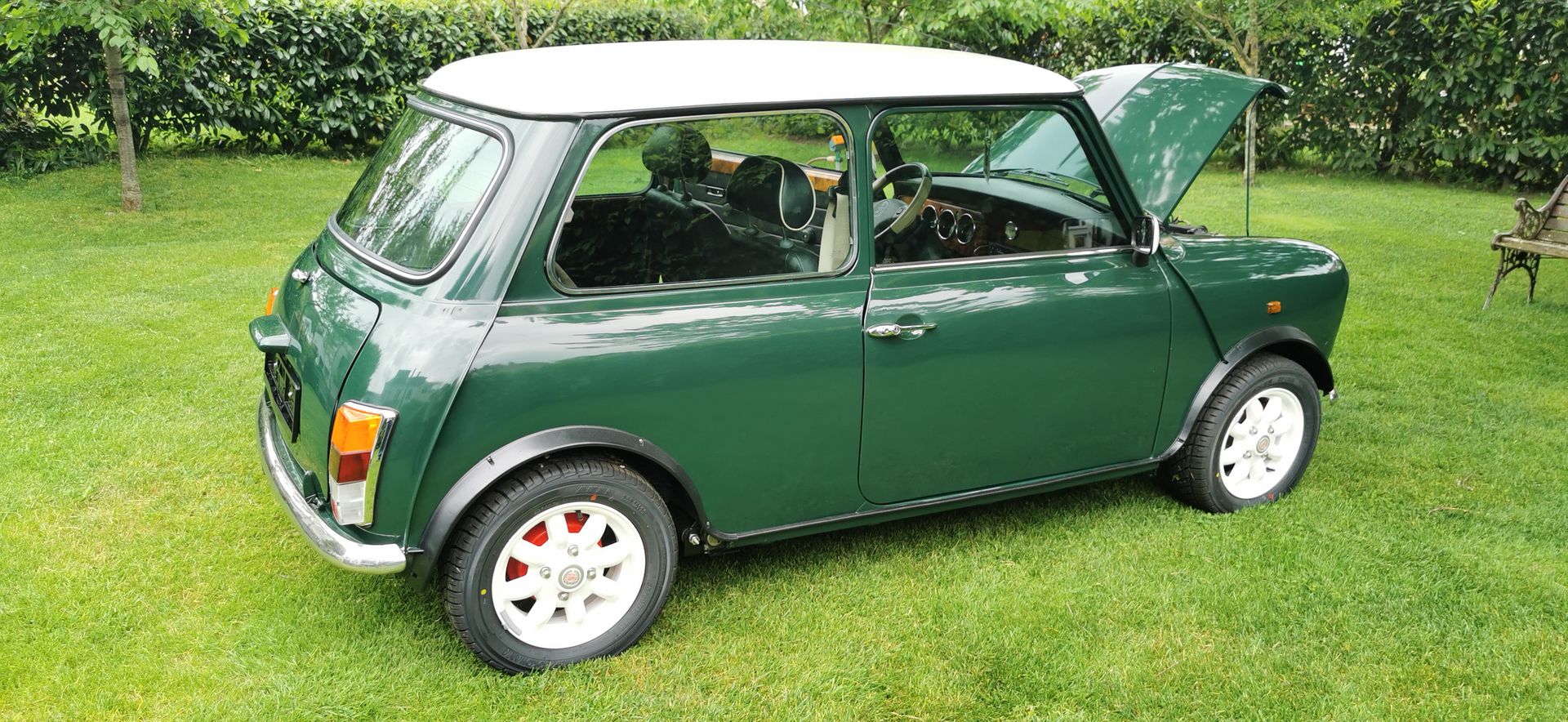 Ebenfalls wurde die Karosserie zerlegt und in separaten Teilen komplett, mit Ausnahme des Dachs, neu lackiert, in British Racing Green metallic.