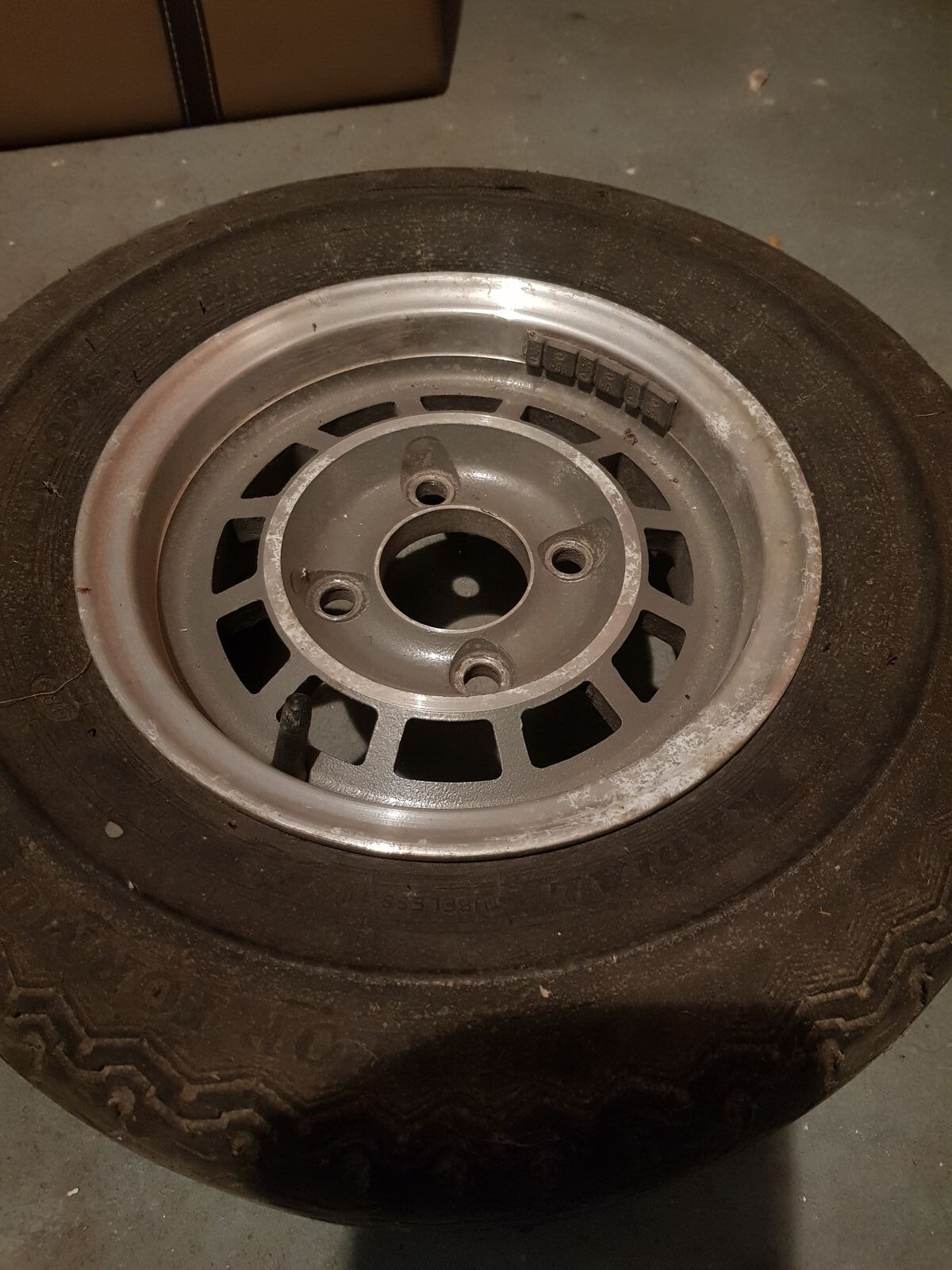 Verkaufe zwei 10 Zoll Alufelgen (5x10) - Exacton, inkl. uralten Reifen ("Hartgummi" - nicht fahrbar). Die Felgen sind ohne Muttern / ohne Kappen und müssen restauriert werden!