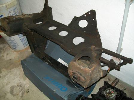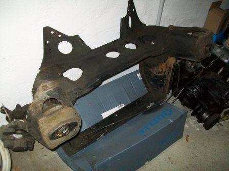 Der Hilfsrahmen müsste aus einem 87er 1000er Mini stammen und dürfte als gute Restaurationsgrundlage (z.B. zum Strahlen und Lackieren) taugen...Alte Gummiballons, Bremszangen, Querlenker, etc sind teilweise noch montiert, aber event. nicht mehr brauchbar....