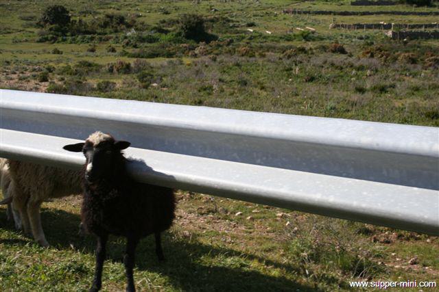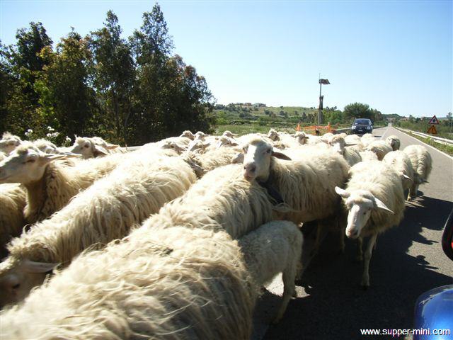 Sardinien 2006 - Eine Schafherde - alle weiß - bis auf Eines (nennen wir es mal Sven) und ich sag jetzt NICHT was Sven genau VOR unserer Motorhaube mit einem der weißen Schafe getrieben hat! (leider kein Beweisphoto vorhanden, aber ich konnte es momentan auch nicht glauben :D)
