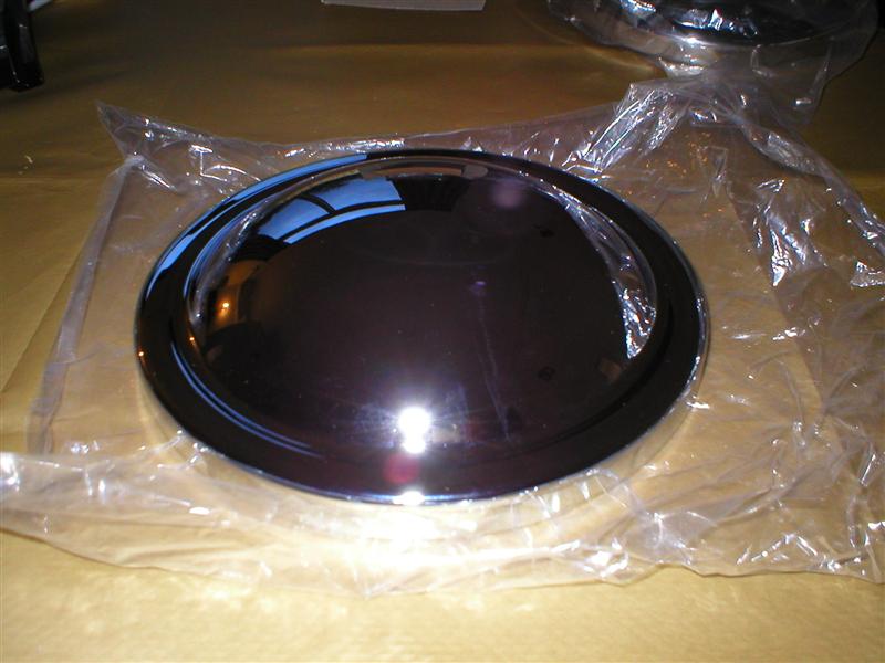 Dann gibts noch die Variante eine Ford Eskort MK1 Kappe drauf zu machen, die sind aber wesentlich breiter, Innendurchmesser 9". Die decken dann die Lüftungslöcher teilweise ab... habe leider grade kein Foto parat, man folge einfach diesemLink hier. Ich vermute aber, dass auf der Seite hier, die Abbildung in der Kategarie "Trim", Abteilung 12" ganz unten eine Kombination mit Fordkappe ist... vermutlich.