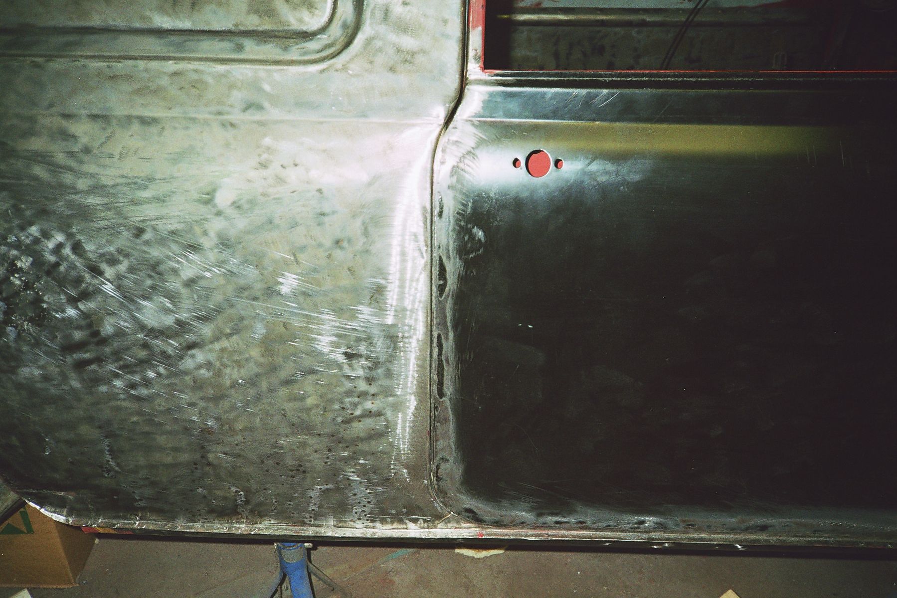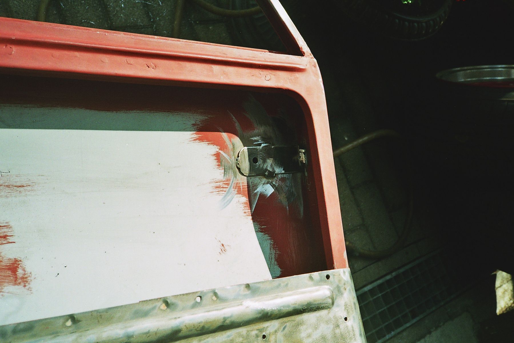 Auf den Bildern sind die MK1 Türen zu sehen, die sehr aufwendig an den PowerVan angepasst wurden. Sie sind an den Aufnahmepunkten zusätzlich verstärkt. Sie passen exakt nur an diesen Van. Diese Türen und auch die Hecktüren sind derzeit nicht auffindbar. Jeder der schonmal solche MK1 Türen restauriert hat, weiß dass sie nur mit Anpassungen individuell an einem Fahrzeug richtig sitzen.