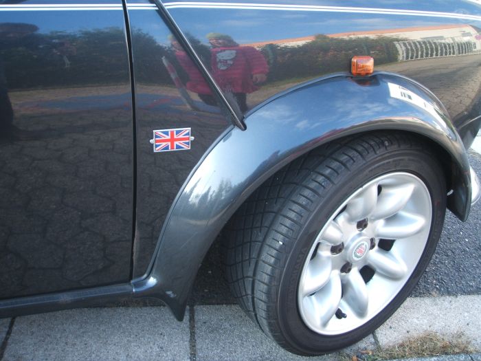 Beschreibung: Sehr schöner Cooper mit viel Holz (Lenkrad mit Airbag, Kurbeln und Griffe sowie Schaltknauf und Bremshebelgriff) und anderem Chrom-Zubehör aus Damenhand. 13" Minilites (nagelneue Yokohamas auf der Vorderachse und sehr gute Dunlops auf der Hinterachse); elektrisches Webasto-Schiebedach; inkl. der vier Zusatzscheinwerfer (Nebel und Fern). Aus 2ter Hand, seit 8 Jahren in unserem Besitz. Alle Inspektionen und Wartungen bei BOSCH gemacht; Garagenfahrzeug. Neuwertige Winterreifen (Blizzak auf 12" Minilites) optional.