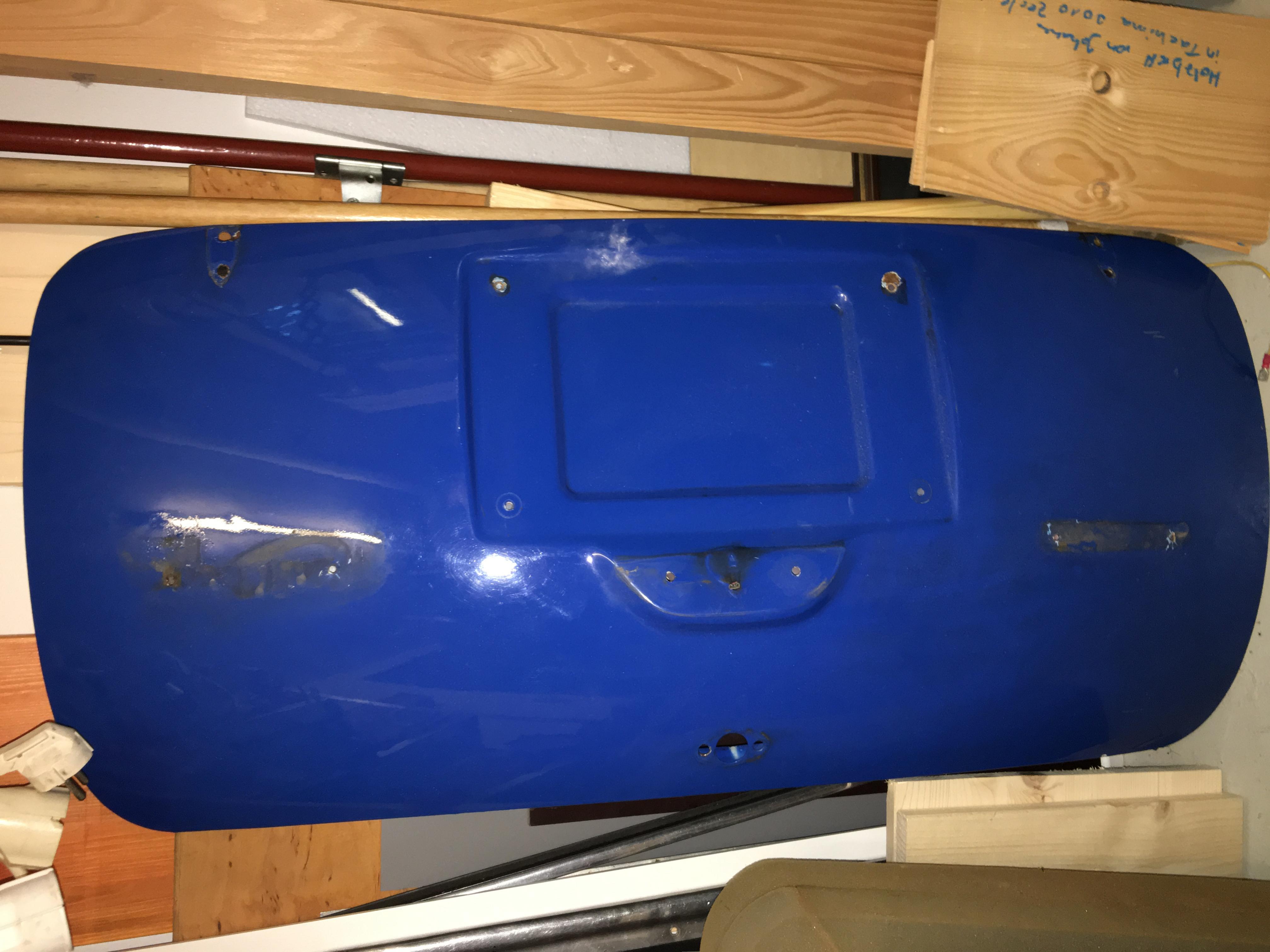 Mängel / Rost: 2 - 3 kleine Roststellen (z.B. am linken Dreiecksblech). Die Heckklappe ist 'durch', dafür ist eine gut erhaltene Inno-Heckklappe mit dabei