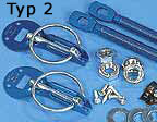 2 Paar Haubenhalter, Aluminium blau eloxiert, neu und nie montiert (siehe Bild, nur blau)