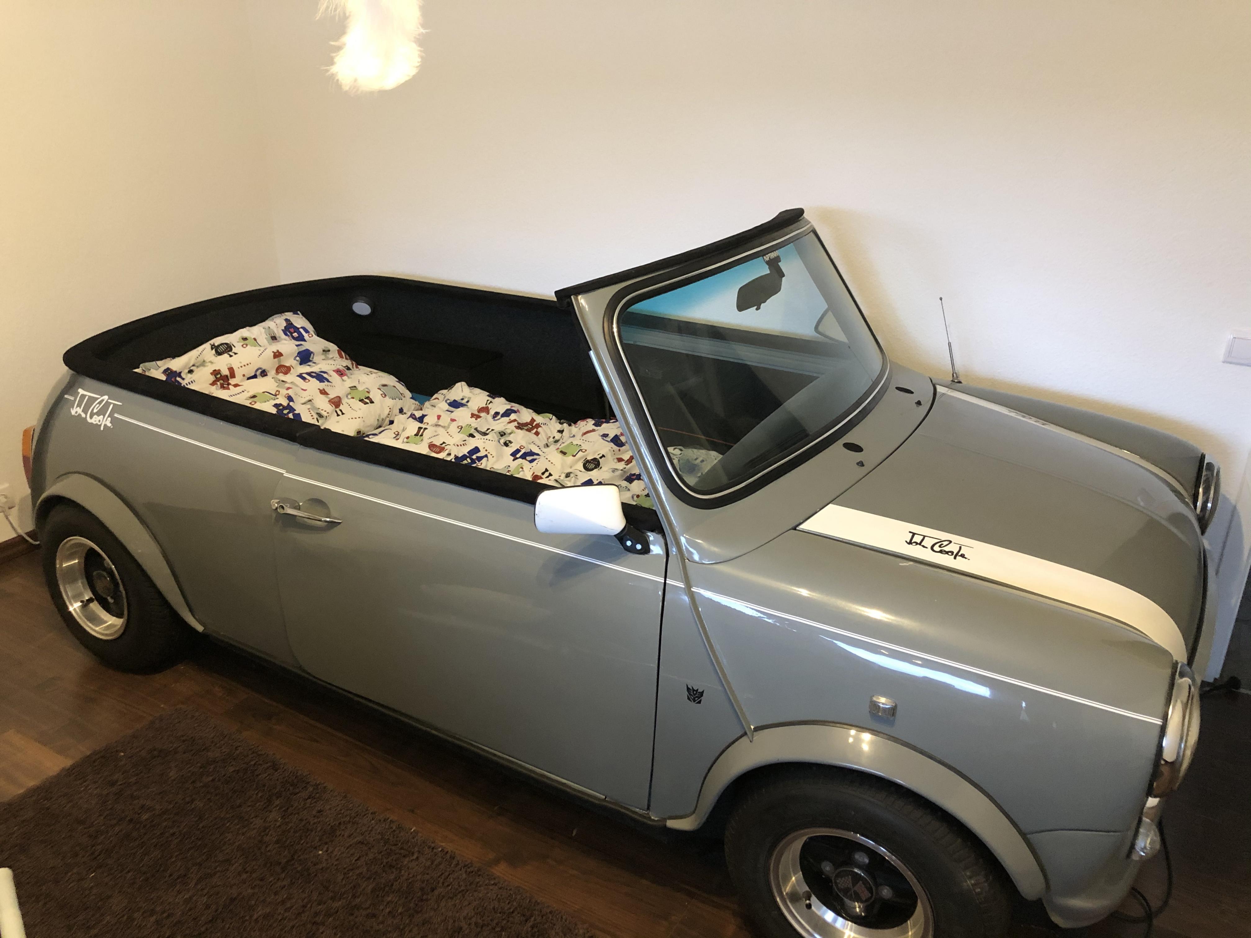 Ich habe meinem Sohn 7Jahre vor ein paar Jahren mal versprochen ihm aus meinem Verunfallten Mini Bj88 ein Bett zu bauen.