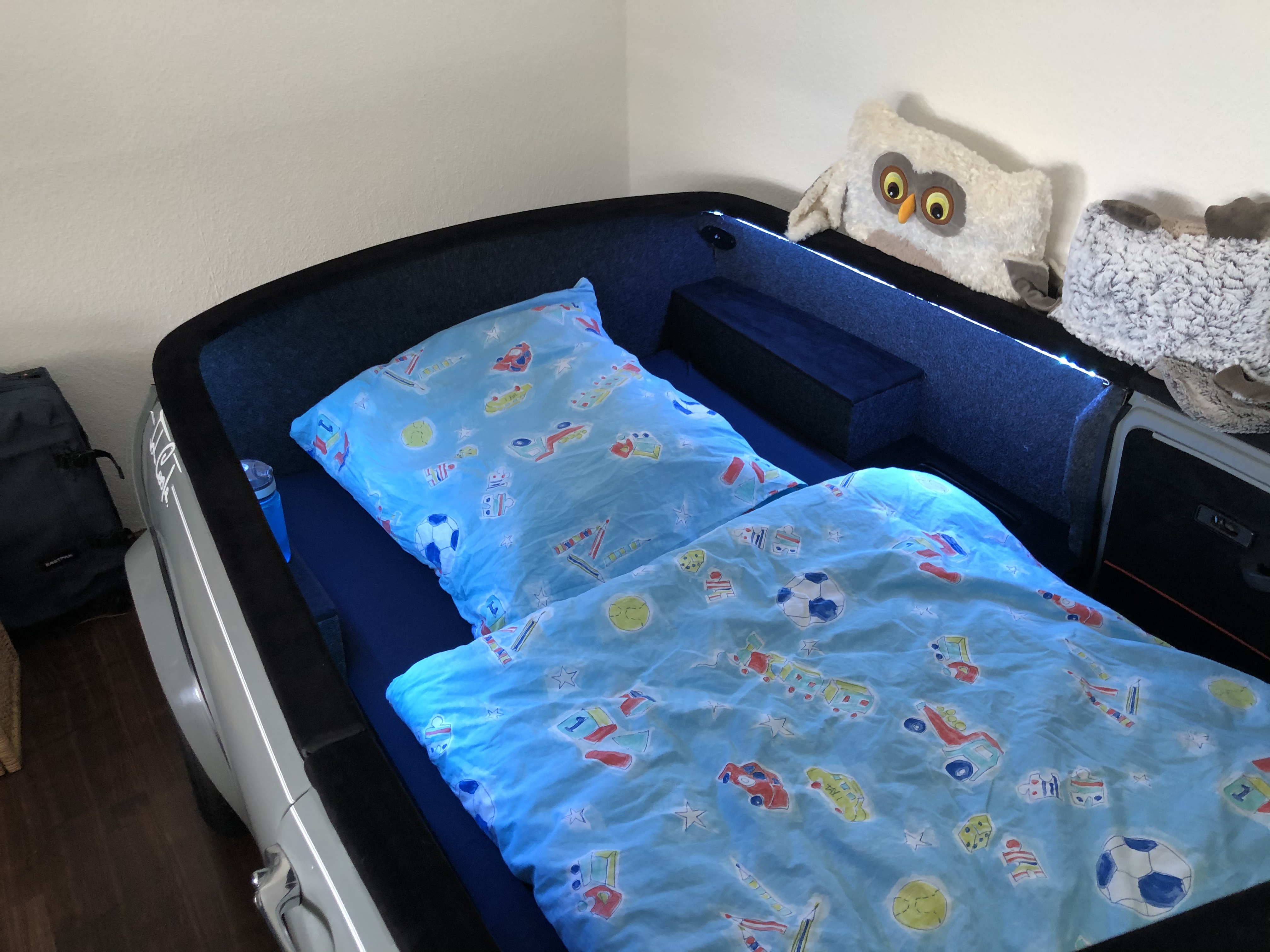 Mein Sohn trennt sich schweren Herzens von seinem Mini Bett.