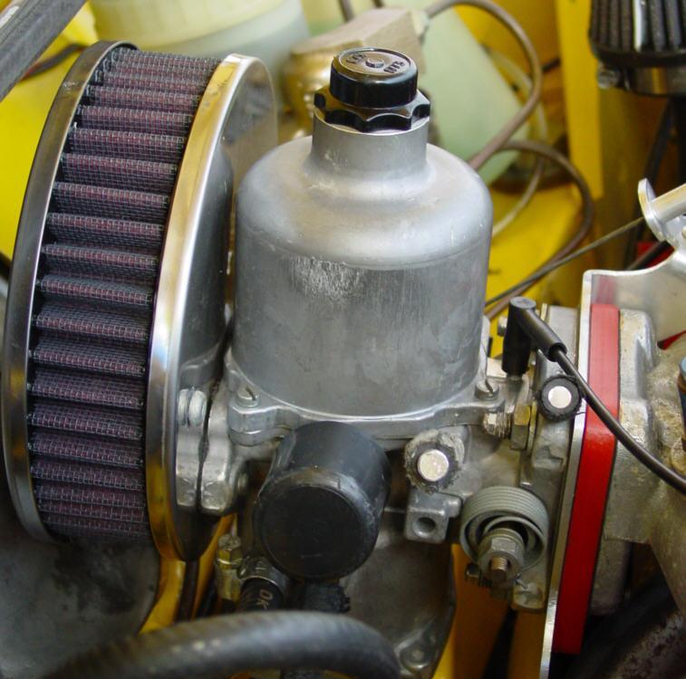 Nebenluft zieht der Vergaser nicht. Alle Dichtungen sind neu.Leider habe ich einen Vergaser von einem Economy-Model erwischt. Diese Vergaser haben rechts noch einen kleinen grauen Kunststoffluftfilter über den Zusatzluft zur Gemischabmagerung im Teillastbereich angesaugt wird. Außerdem hat der Vergaser direkt am Montageflansch noch einen Anschlussstutzen dessen Funktion ich nicht kenne (den Stutzen habe ich verschlossen).