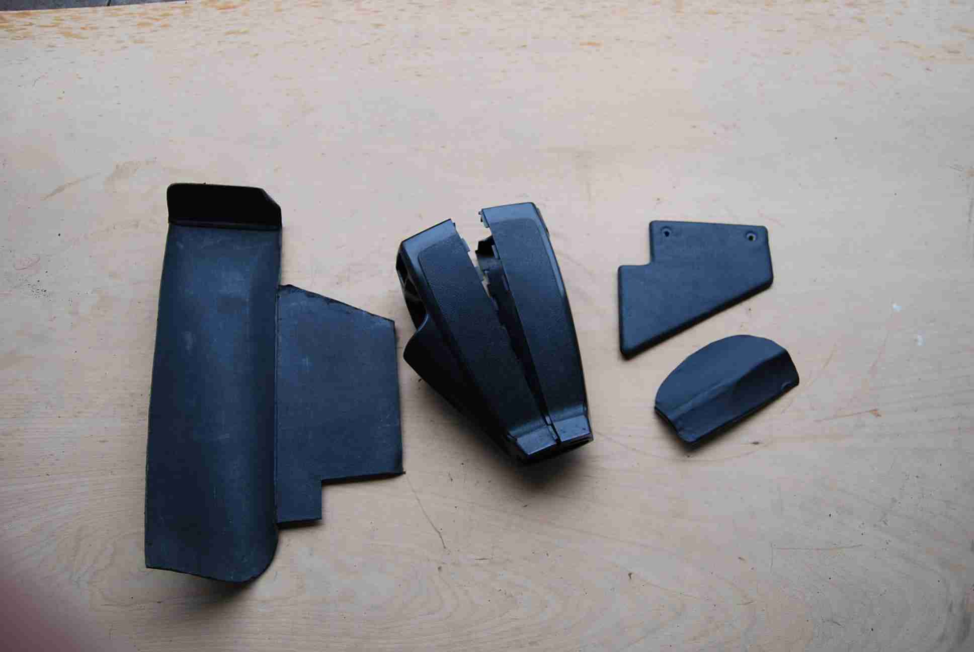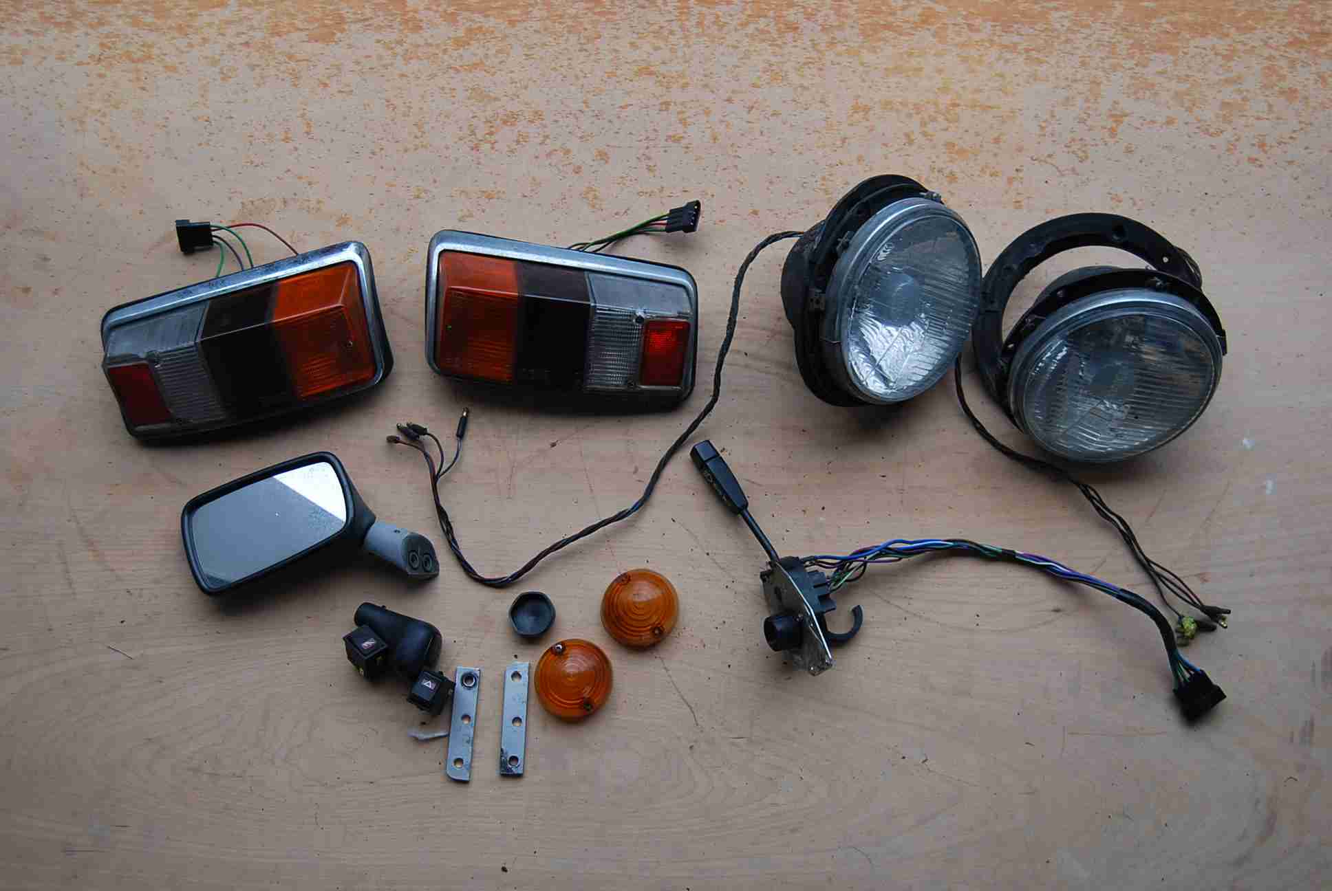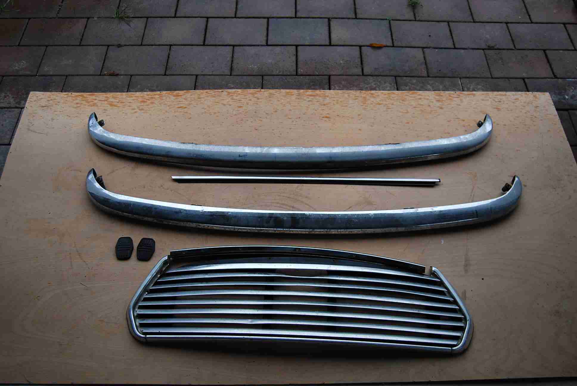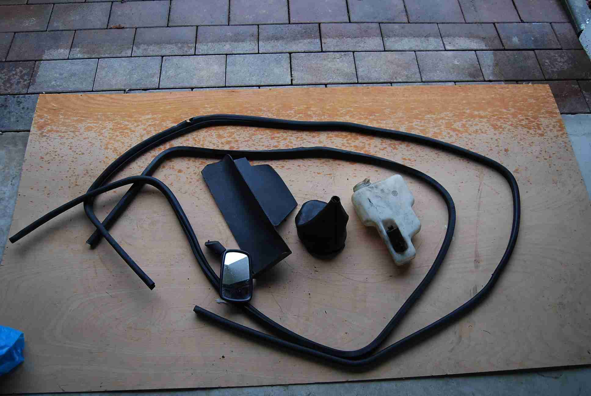 Ebenfalls eine Seitenablage bei der Tür, Cromringe der Scheinwerfer (Zustand 4) eine Radioblende, ein Lüftungsschlauch etc.