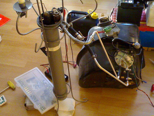 also ich hab n SPi tank genommen und mit dem düsenteil verbunden. pumpe läuft mit 13,8V, düse wird mit stabilisiertem netzteil und einen speziellem vorwiderstand betrieben