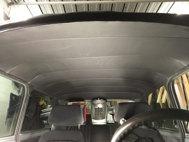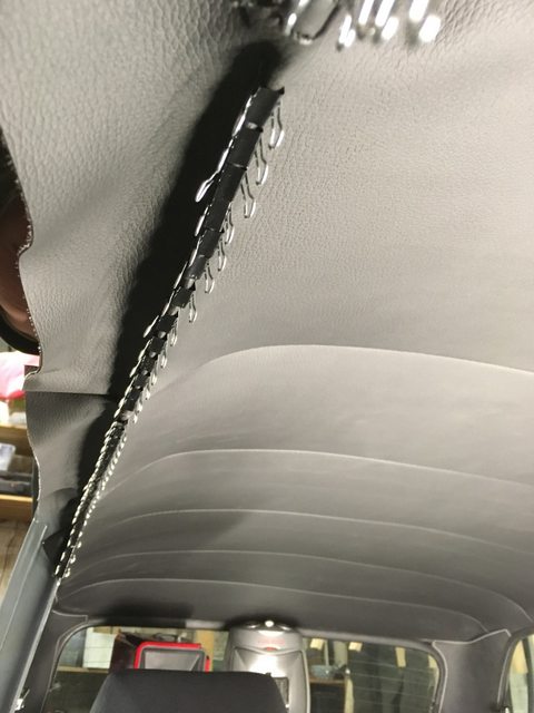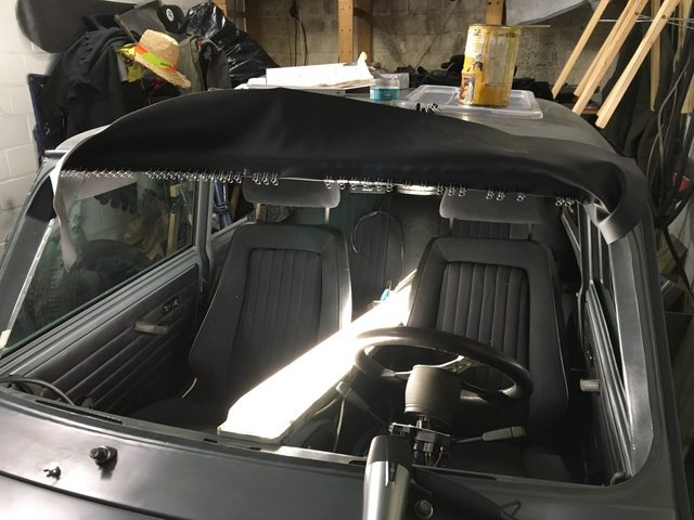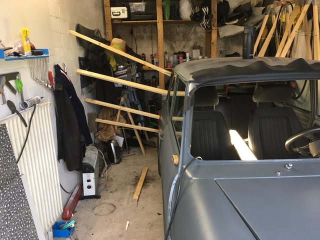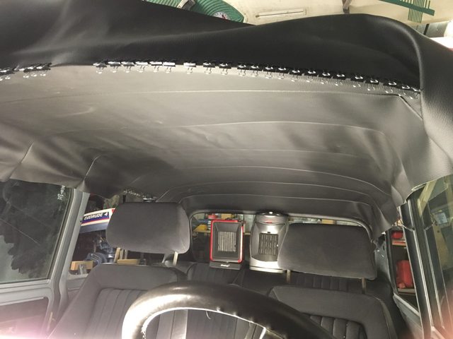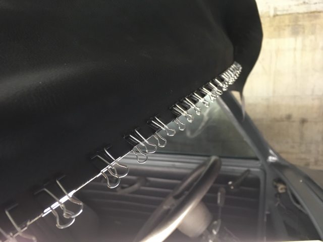 Wie man schon sieht, hängt bereits lose ein neuer Dachhimmel drin. Dieses verfluchte Teil. Danke an die wertvollen Tips aus de Mini-Runde Hannover. Die Papierklammern