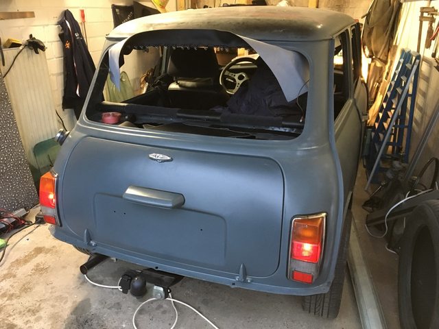 Außen habe ich hier und da Türen und Heckklappe noch fertig lackiert. Heckklappe habe ich dann auch direkt eingebaut: