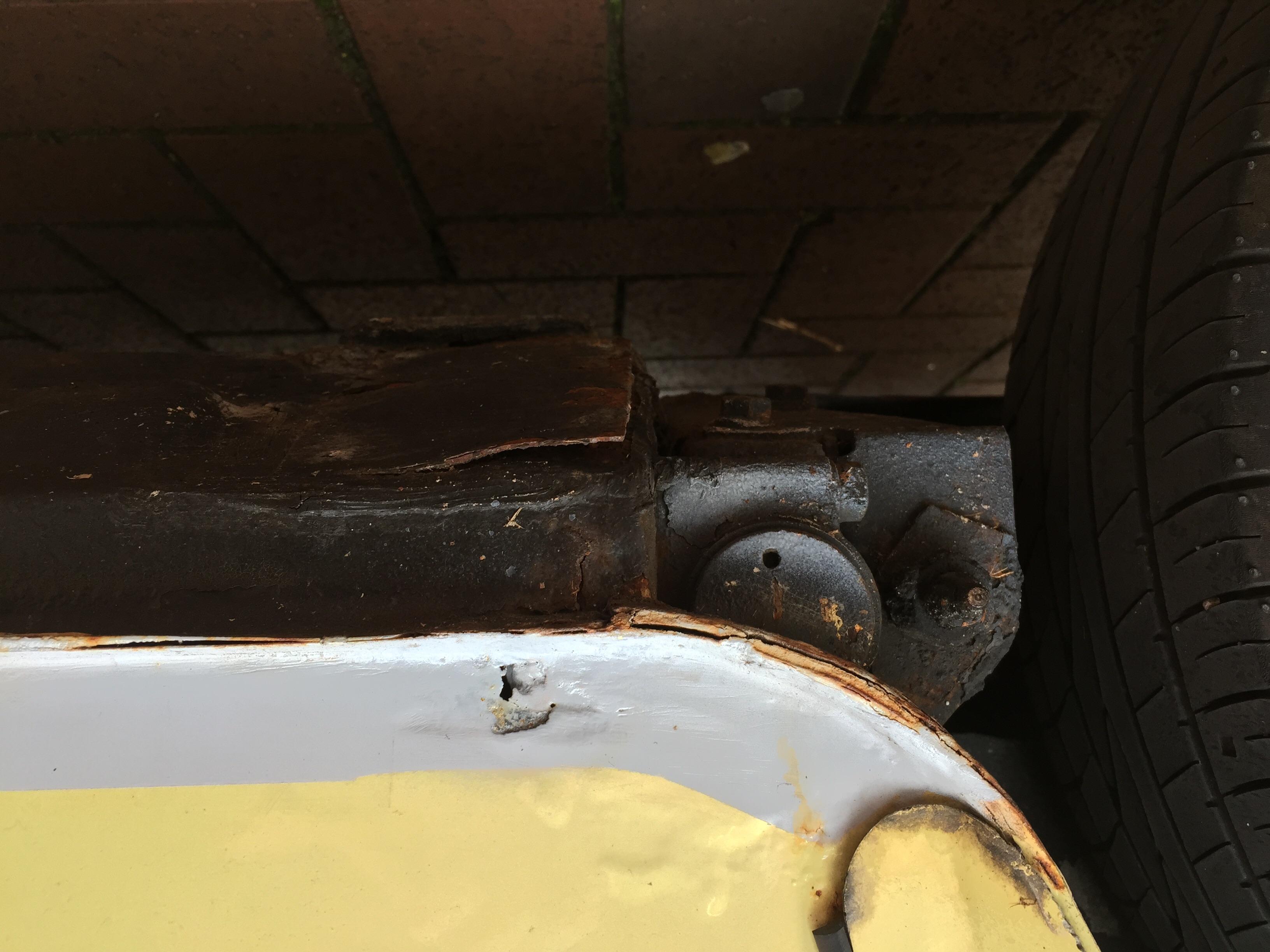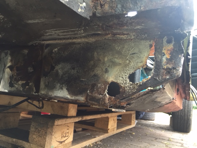 Neben ein paar sichtbaren Rostflecken am Dreiecksblech, Schweller und Front kam nunmal folgendes zum Vorschein: