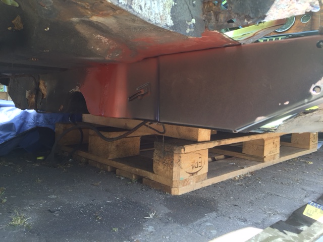 Beifahrerseite hinten rechts ist wieder dicht und neu gekommen. Sprich Innenschweller, Stehwand hinten, Bodenblech.