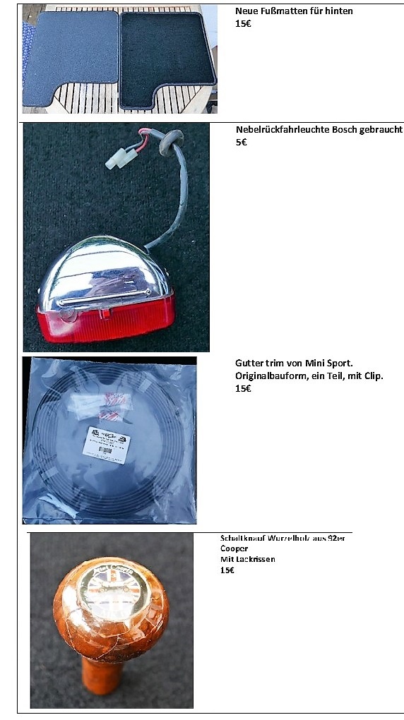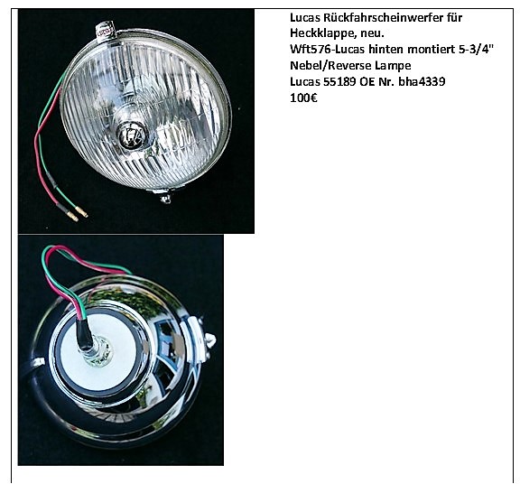 Rückfahrscheinwerfer und 2 Türfangbanddichtungen sind verkauft.