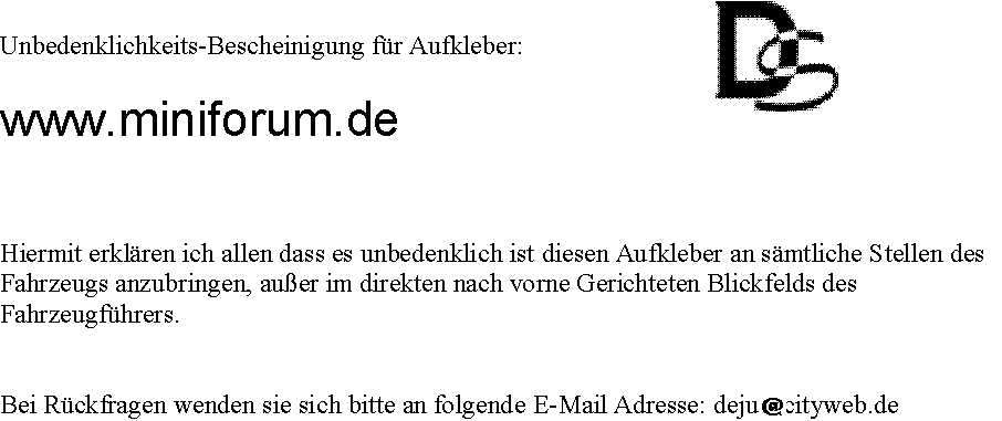 Für die Scheibenverdunklung ist das doch schon klar und macht auch sinn, weil es die Verkerssicherheit beeinträchtigen kann! Aber doch nicht für nen Aufkleber den man sich von aussen auf das Blech klebt. Oder hast du schonmal gesehen das zu einen Spruchaufkleber den man an jedem Kiosk kaufen kann ne ABE dazu gegeben wird. Dann müsste man mit den Aufkleber den man am Fantasialand hinten drauf bekommt ja auch erst zu TÜV fahren.