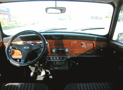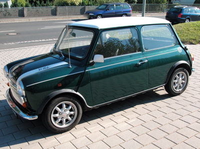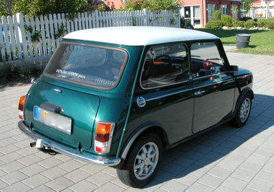 Er hat natürlich ein WurzelholzArmaturenbrett, WurzelholzTürleisten, Wurzelholzheckablage (letzteres "Imitat", Armaturenbrett hat leider leichte Risse); trotzdem optisch sehr schön, leider kommen so langsam auch kleine Rostanfälligkeiten, die sich jedoch noch einfach beseitigen lassen. Was jedoch nicht heissen soll, das das Auto eine Rostlaube wäre. Der KFZ Gutachter schätzte vor 3 Wochen bei der AU das der Mini erst Baujahr 98 wäre, bevor er die Papiere in der Hand hatte.Eine Anhängerkupplung hat er auch, war schon beim Tüv, kann beim ummelden somit sofort in den Brief eingetragen werden; Anhängelast gebremst 500 Kilo, ungebremst 400 Kilo.