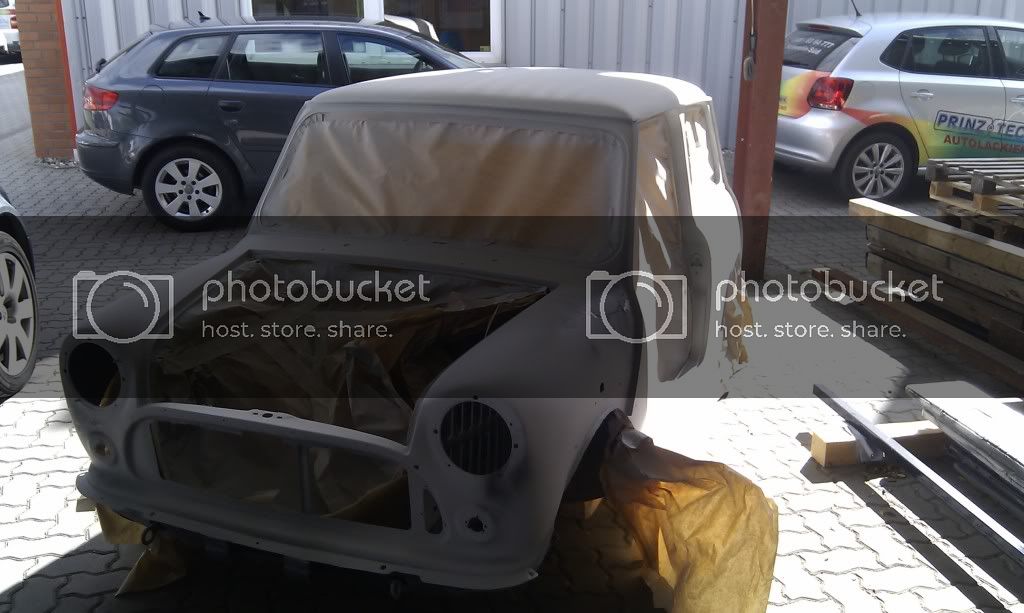 Hier war er dann irgendwann beim Lackierer! Haben sich nochmal richtig Zeit für ihn genommen. Fand es witzige ne Karosse mit 4 Mann durch die Gegend zu tragen! *g* Diese Bilder sind irgendwann zwischendurch entstanden. Der ganze Innenraum etc pp wurde ja auch neu lackiert!
