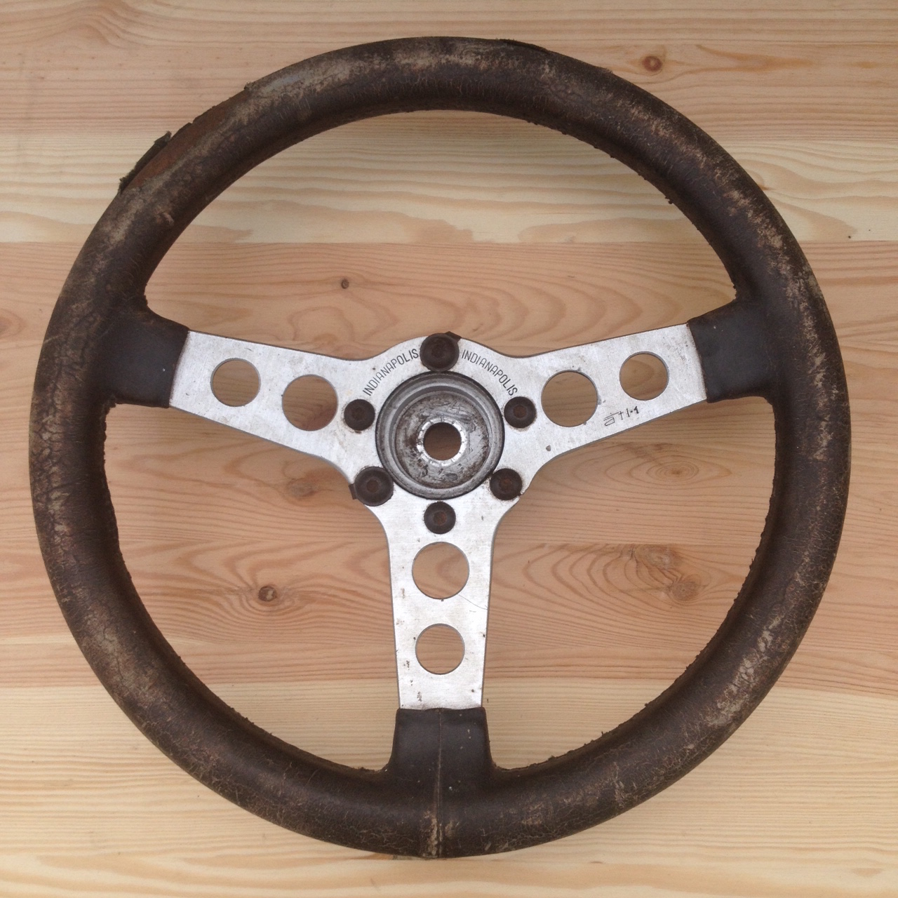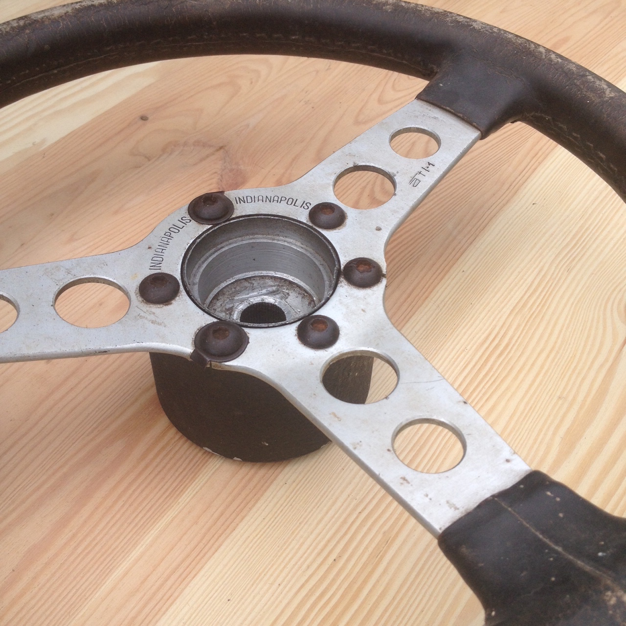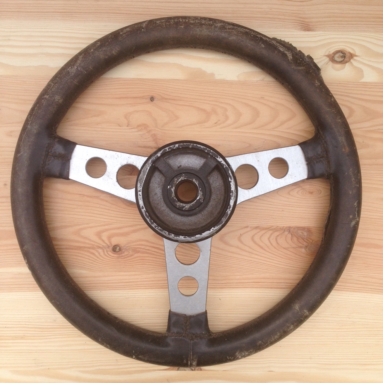Das Sportlenkrad befindet sich ingesamt in gebrauchtem Zustand und hat Alterspuren. Der Lederbezug ist verschlissen und muss gewechselt werden.