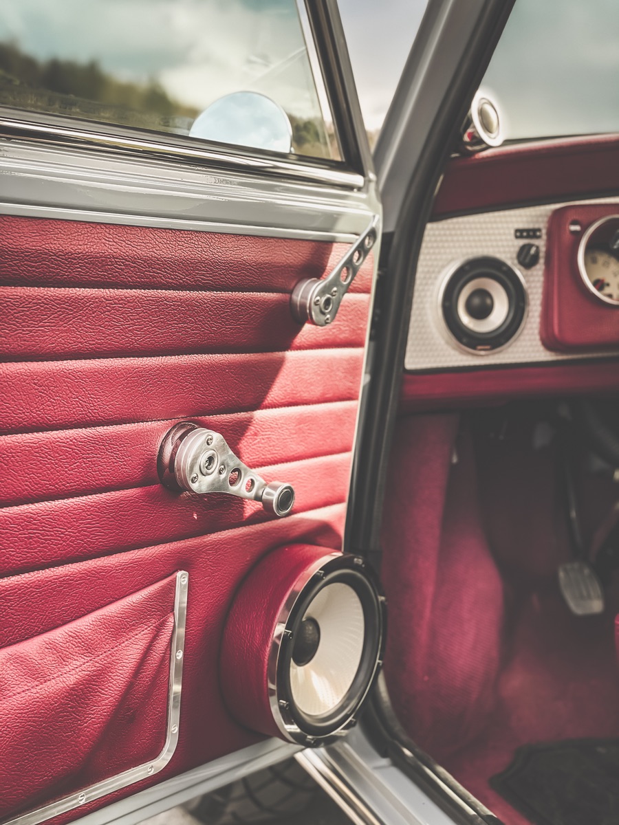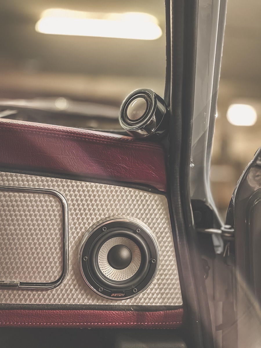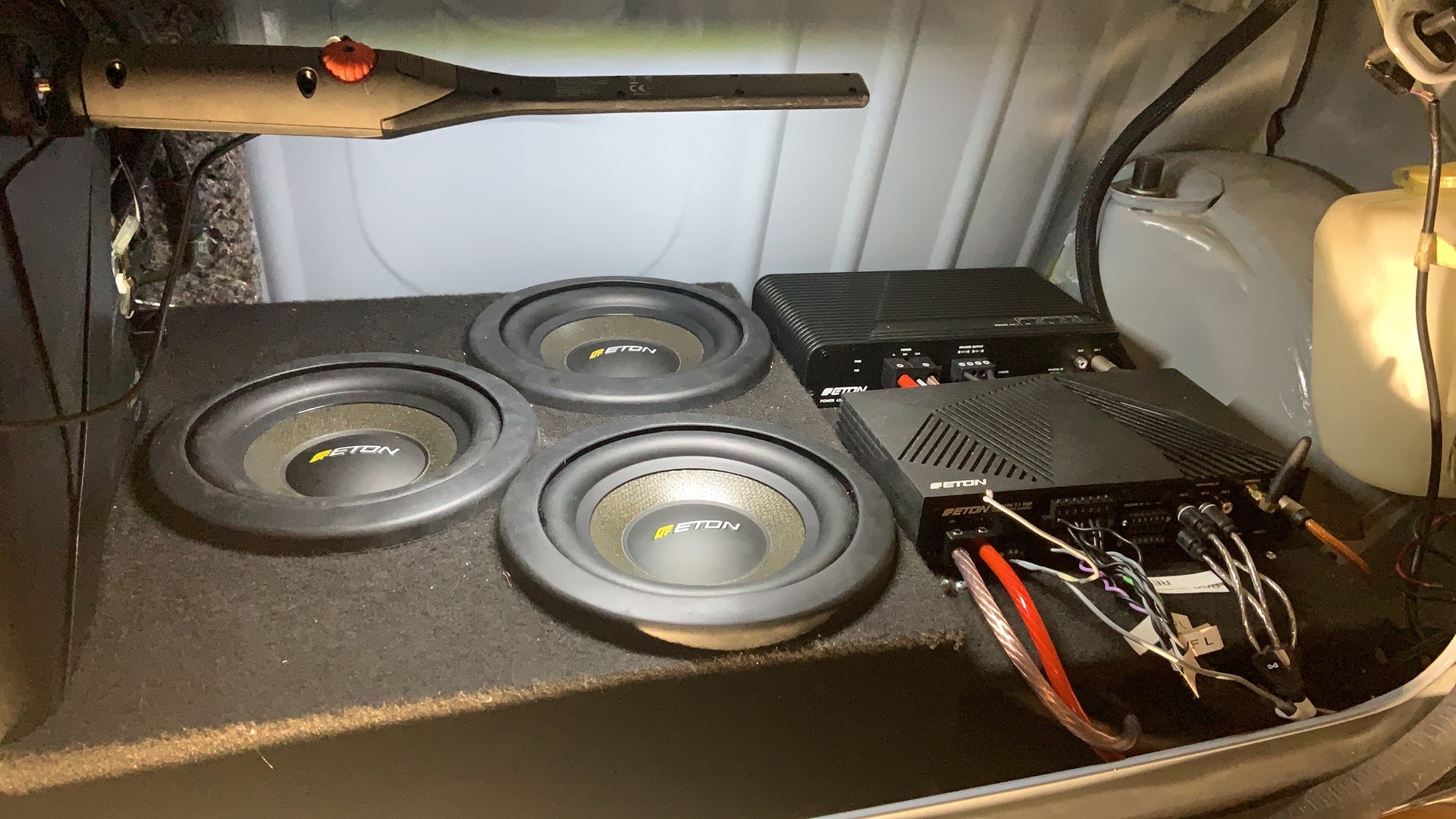 Hi, habe ein ETON Core S3 bei mir verbaut. Dazu wurde folgendes geändert: bei der Restauration habe ich gleich einen festen Einbauplatz für meine Tiefmitteltöner mit einbezogen, deshalb wurden gleich die Lautsprecherringe ins Türblech eingeschweisst, da der Mini relativ wenig Türvolumen hat, ca. 17 Liter fiel die Wahl auf die Core TMTs, diese performen mega in den kleinem Türvolumen, hier passen die TSP Daten der Lautsprecher perfekt! Für die Mitteltöner habe ich mir aus PE Rohr ein Koppelvolumen gebaut mit exakt einem halben Liter Volumen, diese sind so gebaut, dass ich sie durch die original Lütunsdüsen im A Brett stecken konnte und von hinten mit Winkeln gegen das A Brett verschrauben konnten, so ist es reversibel und zerstörungsfrei, was mir beim 40th A brett wichtig war. Danach habe ich mir 3D Druck halter gedruckt für die Hochtöner, diese werden zwischen Türdichtung und Falz gesteckt. Darauf konnte ich dann die original ETON Aufbaugehäuse aus Alu schrauben. Leider waren diese etwas zu groß, daher habe ich diese abgedreht und kleiner gedreht. Danach kamen die Hochtonhalter in die Galvanik und wurden verchromt. Für die Mitteltöner habe ich mir auch im Design der original Lüftungsdüsen Ringe gedreht und verchromt, sowie noch einen Zierring für den Tieftöner. Diese wurden ebenfalls verchromt. Dann noch neue Türpappen gestaltet und im original Rotton und Leder satteln lassen. Für die Türtaschen habe ich mir mittels Wasserstrahlschneider aus 3 mm Aulublech in Form eines langen U zwei Halter schneiden lassen und dazwischen auch Leder geklebt und das Ganze dann auf die Pappe verachraubt. Die Ausrichtung ist nun perfekt. Eine perfekte Bühne ergibt sich nun im Mini. Angeschlossen ist das Ganze vollaktiv mittels einer ETON Stealth 7.1 DSP Endstufe. Für einen super sauberen Bass habe ich im Kofferraum 3 x 8“ ETON 8-530 HEX Subwoofer in einem laminierten geschlossenen Gehäuse montiert. Dieses wurde extrem verwindungssteif aus Multiplex Holz gebaut und durch die original Bodenstopfen mit M8 Edelstahlschrauben und dicken U Scheiben verschraubt. Danach unten mit Dichtmasse gegen Korrosion und Wassereintritt abgedichtet. Somit ist die perfekte Körperschallübertragung gewährleistet. Alles wurde natürlich mit Alubutyl gedämmt. Die Woofer werden mittels einer ETON Power 150.6 6 Kanal Endstufe betrieben, also pro Doppelschwinspule 2 Kanäle. Diese ist auch über den DSP gesteuert. HiRes WiFi Streaming ist nun auch verlustfrei möglich mittel Apple Airplay...insgesamt sehr feinzeichnend und super dynamisch geworden. Im Moment wird der Kofferraum nun noch mit rotem Teppich und Leder ausgebaut, Ziel soll eine möglichst „originale Optik“ nachher sein. Frequenzmessungen setze ich die Tage mal rein, durch die perfekte Ausrichtung ist es fast schon linear ohne viele Eingriffe. Die Hutablage wurde mit sounddurchlässigem Stoff bezogen, somit sieht man nichts vom Einbau. Wer gerne mal Probe hören will, darf dies gerne tun;)
