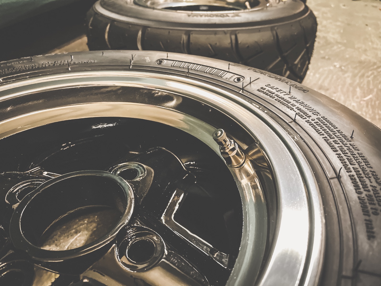Hau jetzt auch mal meine Erfahrungen zum Thema 6x10“ Revos hier rein: das Gleiche Problem mit den Nachbaufelgen hatte ich auch. Die neueste Version hat ein deutlich vergrößertes Tiefbett bekommen. Dadurch ist die „Einbuchtung“ die in der Diagonalen gesehen die nötige Tiefe (Verkürzung der Länge) bringt vergrößert worden. Dadurch spannt der Reifen beim Aufsetzen. Dreht man diesen nun ein, wird die Reifenflanke beschädigt. Besonder der Yoko Advan 032R ist da sehr empfindlich, weil dieser verstärke Seitenwände hat. Auch warm machen, falschrum montieren bringt alles nichts! Habe damals mir 2 Sätze Felgen zerstört und mehrere Reifen. War danach bei zig Reifenhändlern zum Aufziehen. Des Rätsels Lösung ist die manuelle Montage mit einem Reifenmontiereisen und dünnem Felgenschutz. Egal mit welcher Maschine (ob neu oder uralt) und es gibt Leute die machen jeden Tag 10“ Quadreifen…bekommt man das nicht drauf. Nur manuell ist es möglich! Dann reicht der platz gerade so aus um den Reifen aufzudrücken. Wer darauf keine Lust hat: bei Huddersfield Mini Spares bekommt man die Reifen gleich aufgezogen und gewuchtet mit Ventil zu kaufen!