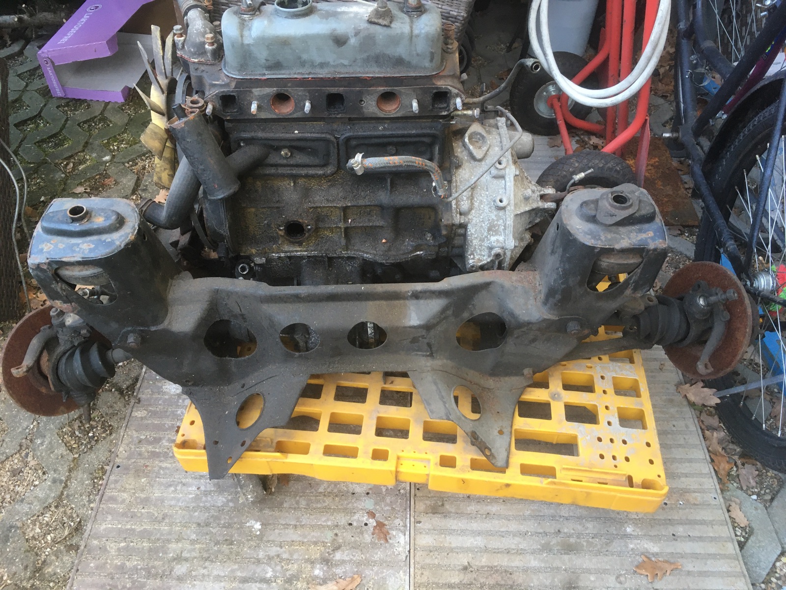 Wird nur so verkauft wie auf den Bildern zu sehen mit Antriebswellen und div. Achsteile .& vorderachsrahmen