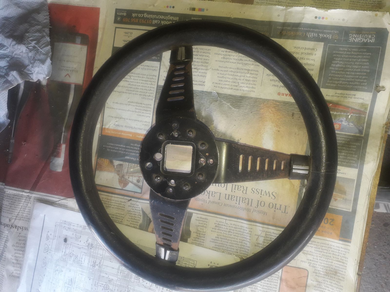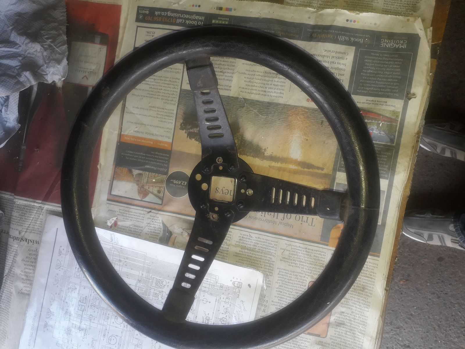 Ich bin im Moment bei einem Freund in UK und er trennt sich aus Altersgründen von seinen über Jahrzehnten angesammelten Teilen. Das Lenkrad hängt min. 20 Jahre in der Garage .