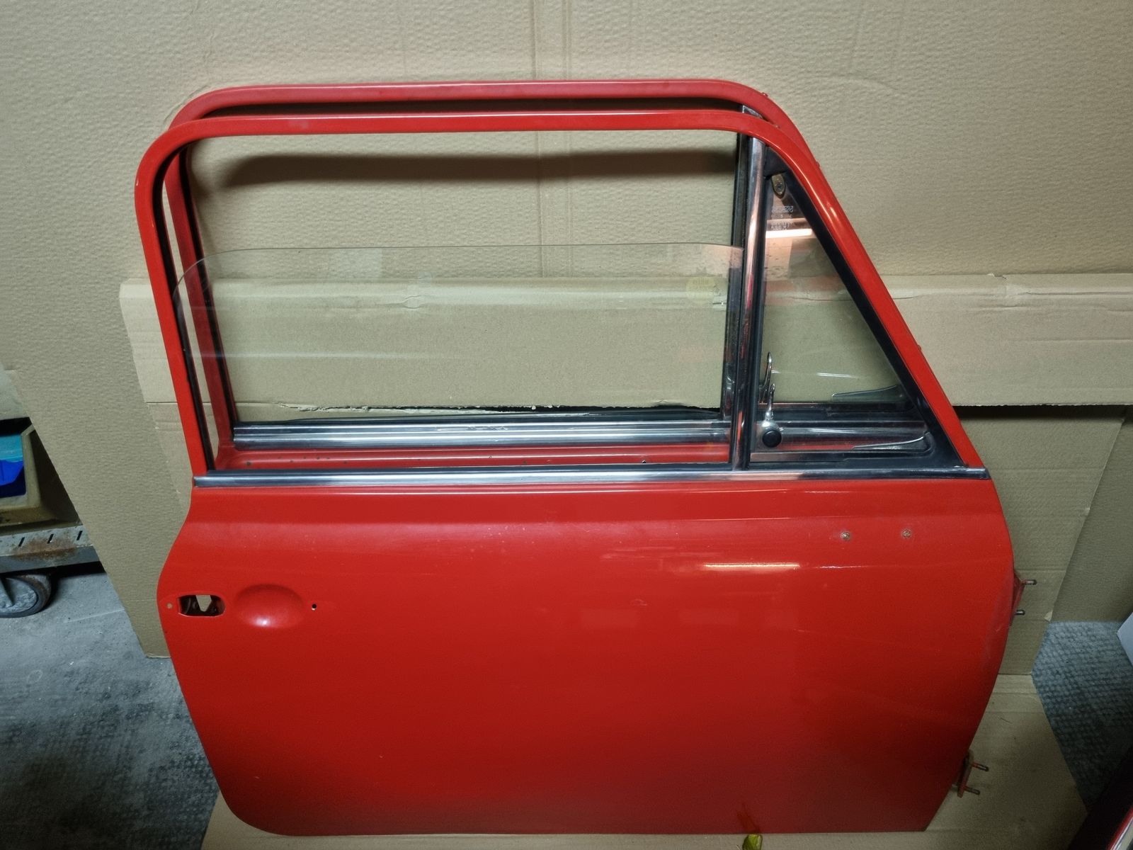 - Eine der beiden Türen ist zerlegt (Scheiben und Hebemechanismus ausgebaut)